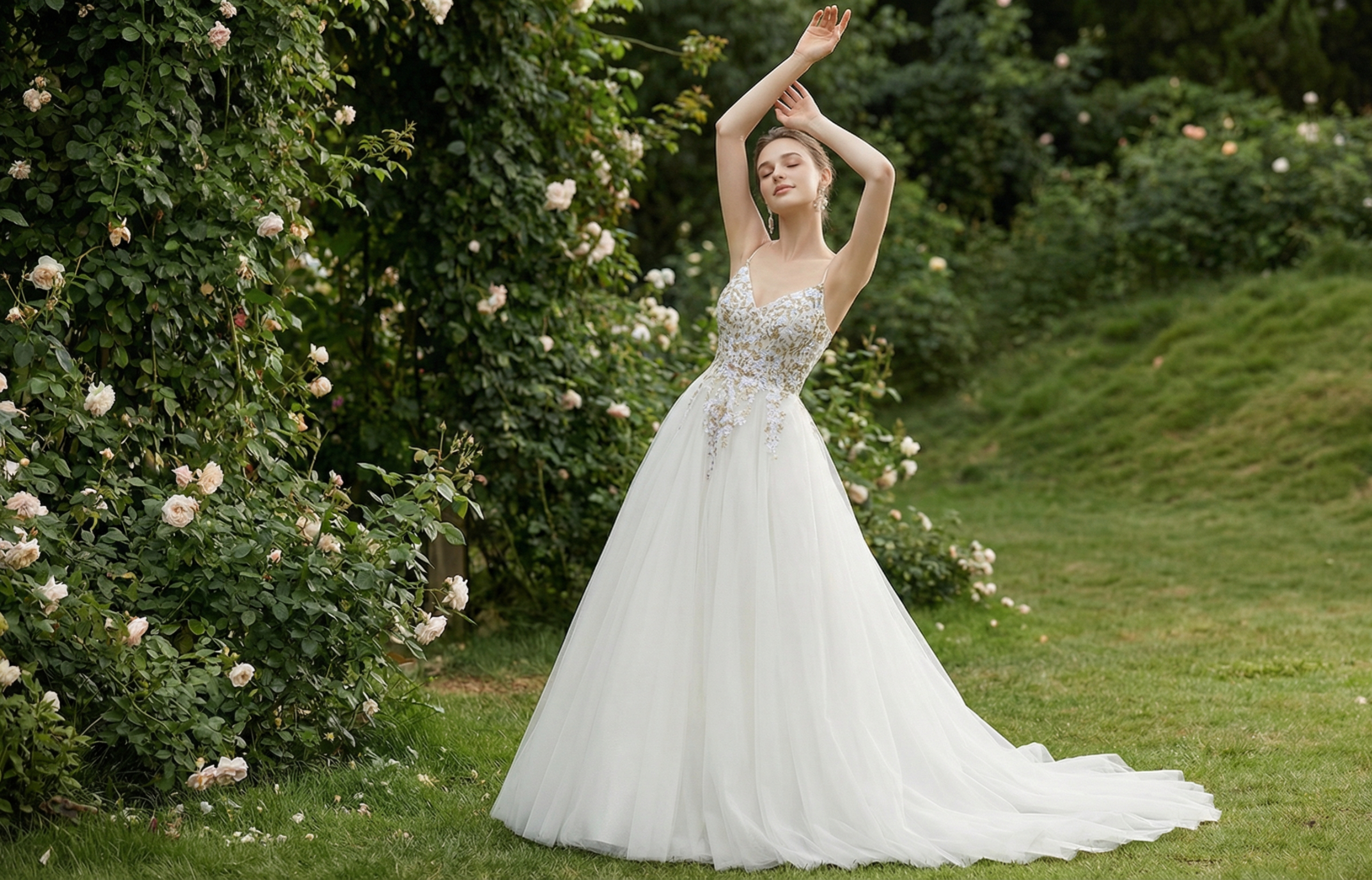 A Line Spaghetti Straps Wedding Dress with Appliqued